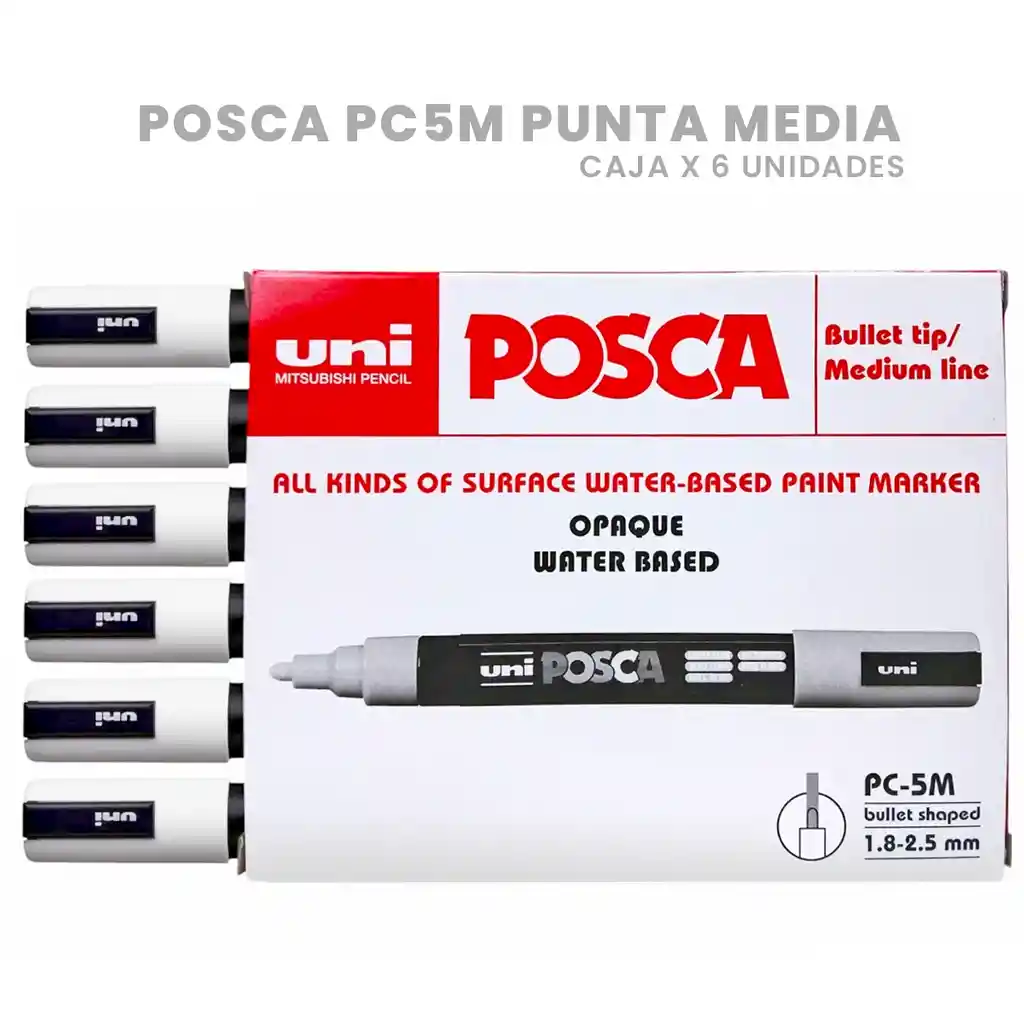 Caja de Rotuladores x6 posca blanco Punta media PC 5M resistente a la luz y al agua, original.