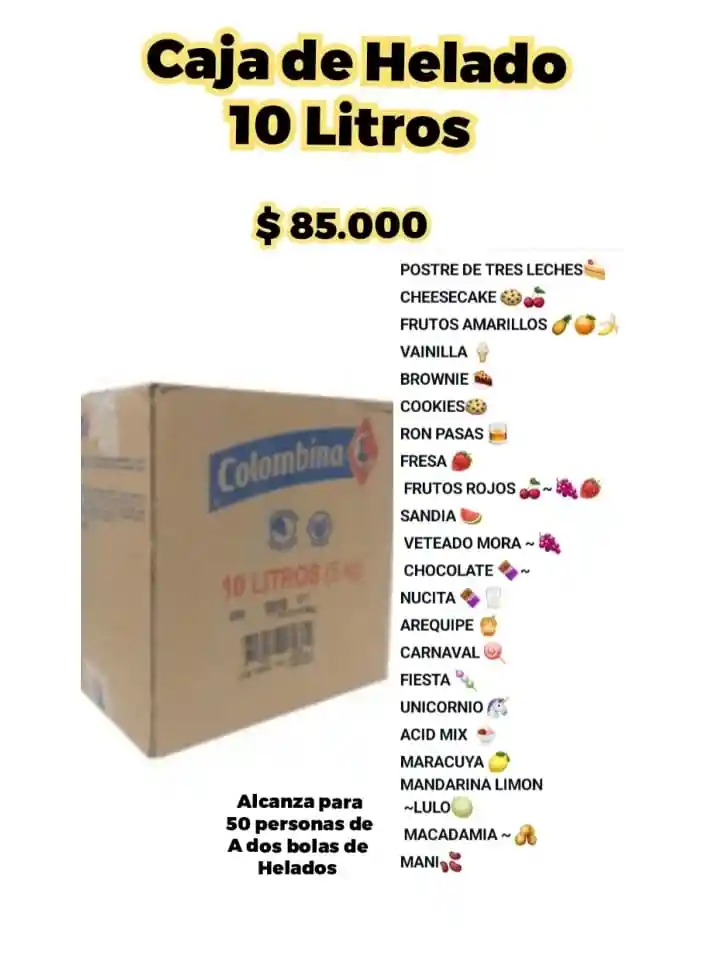 cajas de helado de 10 lts y 5 lts