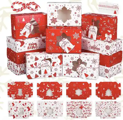 CAJAS NAVIDEÑAS PAQUETE X 4 SURTIDAS CARTON CARULINA-PARAFINADAS DISEÑOS UNICOS. INLCLUYE TARJETA Y CINTA MEDIDAS: 12X18X6