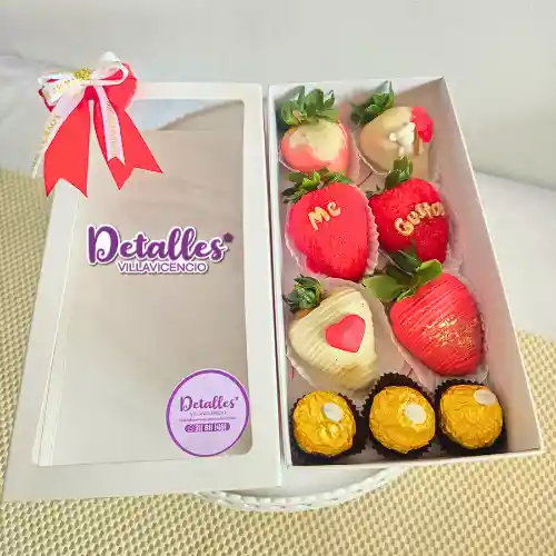Caja de cartón estampada 6 fresas con chocolate 3 Ferrero Rocher Moño decorativo