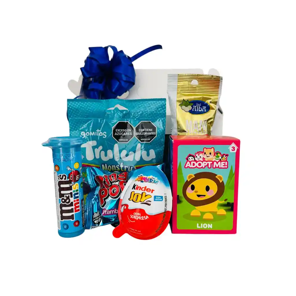 CAJITA FELIZ - NIÑO Incluye: 1 Gomitas Trululu 70g (Variada segun disponibilidad) 1 Mani con sal horneado premium Del Alba 40g 1 Ring Pop 10g 1 Tubo de MM minis 30.6g 1 Huevo Kinder Joy Niño 1 Juguete (Variado segun disponibilidad) Caja tipo lonchera mediana blanca. Papel picado, moño y tarjeta (DE-PARA). La caja se envia en una bolsa de papel sellada. NOTA: Si deseas que marquemos la tarjeta DE y PARA escribir en "COMENTARIO AL SHOPPER"