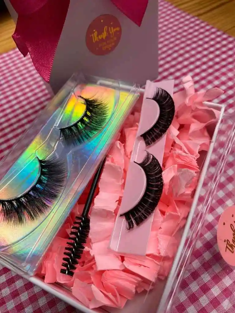 Cajita de pestañas con dos referencias, prácticas y fáciles de instalar incluye cepillo para uso diario.