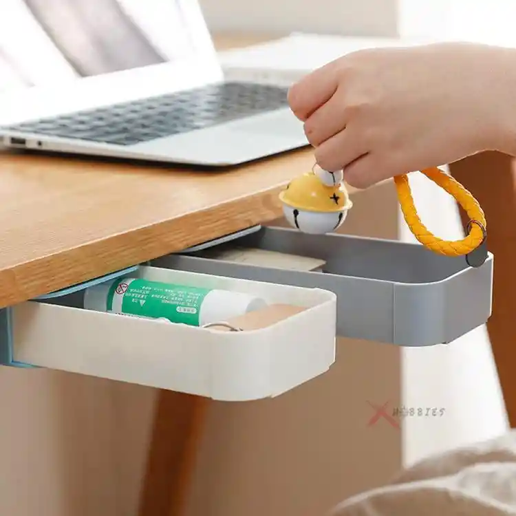 Si estas buscando donde guardar las cosas para que tu escritorio no se vea desordenado o no quieres que las personas vean ciertas cosas este cajón es todo lo que necesitas. Gracias a su diseño lo puedes ubicar bajo tu escritorio para que nadie lo vea, no necesitas tornillos para asegurarlo, solo necesitas un adhesivo que ya viene incluido en la caja del producto. En el podrás guardar pilas, tijeras, dinero, tarjetas, entre otros. ESPECIFICACIONES: Material: ABS Dimensiones: 22cm x 9.5cm x 3.5 Maximo peso soportado: 1.5kg Peso: 175g. INCLUYE: 1 Cajón. 2 Adhesivos.