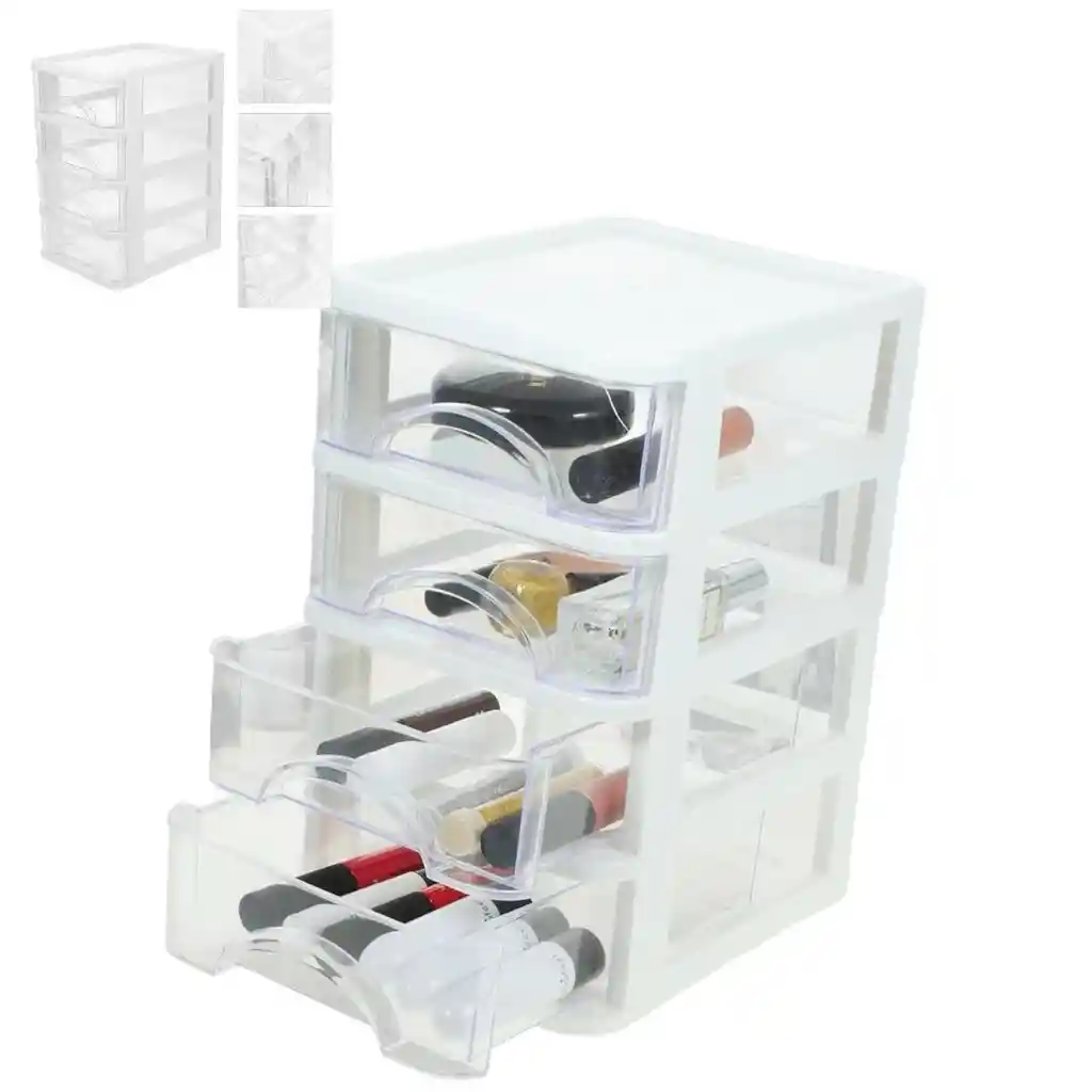 El organizador de 4 cajones lo puedes usar lo que necesites maquillaje,esmaltes,joyas,papeleria etc. caja de almacenamiento es segura y duradera de usar. La capacidad adecuada hace que pueda mantener todo su contenido organizado. El organizador de escritorio está especialmente diseñado for guardar artículos diversos Características : color: blanco -Material: plástico - amaño: 23,40 x 18,30 x 14,20 cm/9,20 x 7,19 x 5,58 pulgadas
