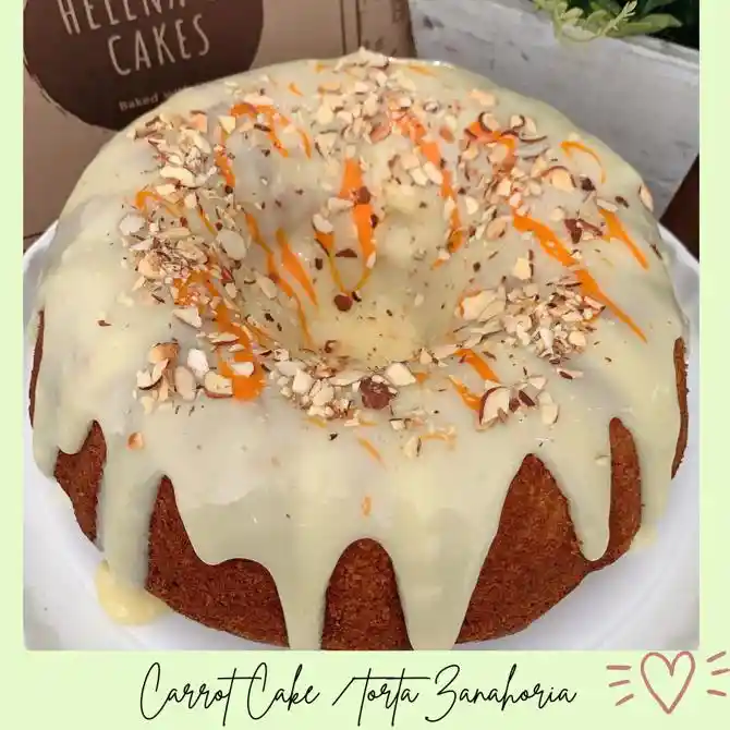 Cake de Zanahoria, bañada en Frosting de la Casa y decorada con almendras ideal para 26 porciones, aproximadamente