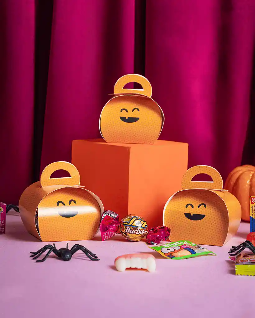 La sonrisa más dulce de Halloween llegó 💜 Nuestra Calabaza Boo es un empaque edición especial con forma de calabaza, lleno de color, diversión y dulzura. 🍭 En su interior encontrarás un mix terroríficamente delicioso de dulces como Nucita, Oka Loka, Burbuja Jet, Gomita Trolli y Aro Trululu 🎃✨ 👉 ¿Y tú? ¿A quién vas a sorprender? 💌