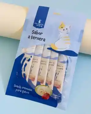 Snacks cremosos para gatos con sabor a ternera. Producto con fecha de vencimiento vigente.
