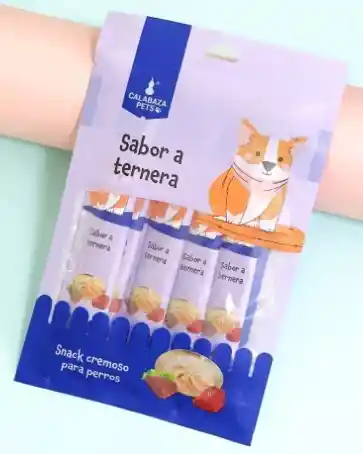 Snacks cremosos para perros con sabor a ternera. Producto con fecha de vencimiento vigente.