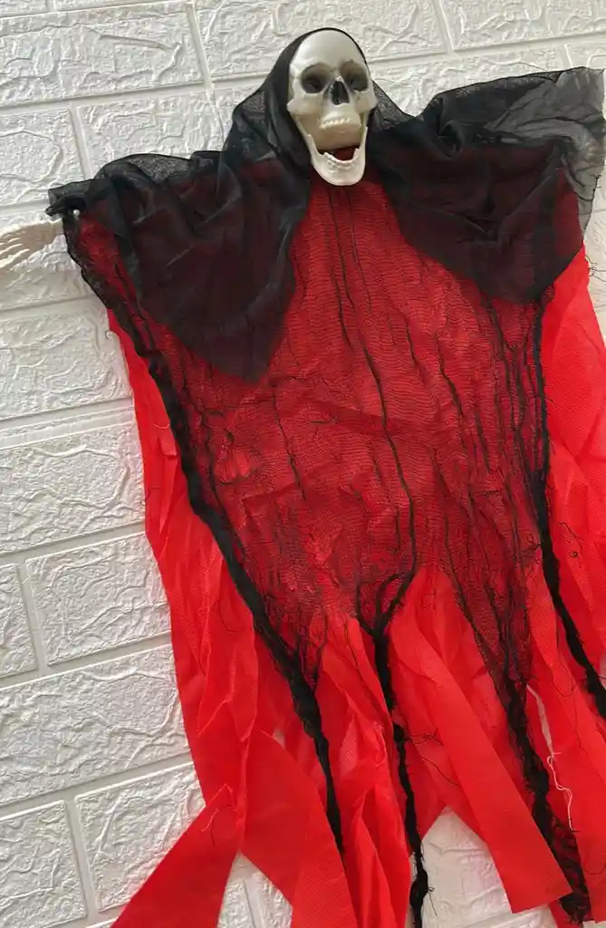 CALABERA COLGANTE TRAJE ROJO 70CM DE ALTO DECORACION DE HALLOWEEN COD.4425-1