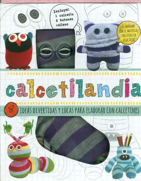 Calcetilandia Qué Hacer Con un Calcetín Sin su Par? y Con Uno Lleno de Agujeros? Puedes Transformarlo en Zack; el Monstruo Calcetín; en el Cachorrito Héctor; en un Aterrador Bote Para Los Lápices y en Otros Personajes Geniales. Pon en Práctica Tus Habilidades! Este Libro; Con Claras Instrucciones Paso a Paso; te Ayudará a Transformar Los Calcetines Que te Sobran en 8 Divertidas Manualidades. Incluye Además 2 Botones; 1 Calcetín de Rayas; Relleno. ISBN: 9781472345004