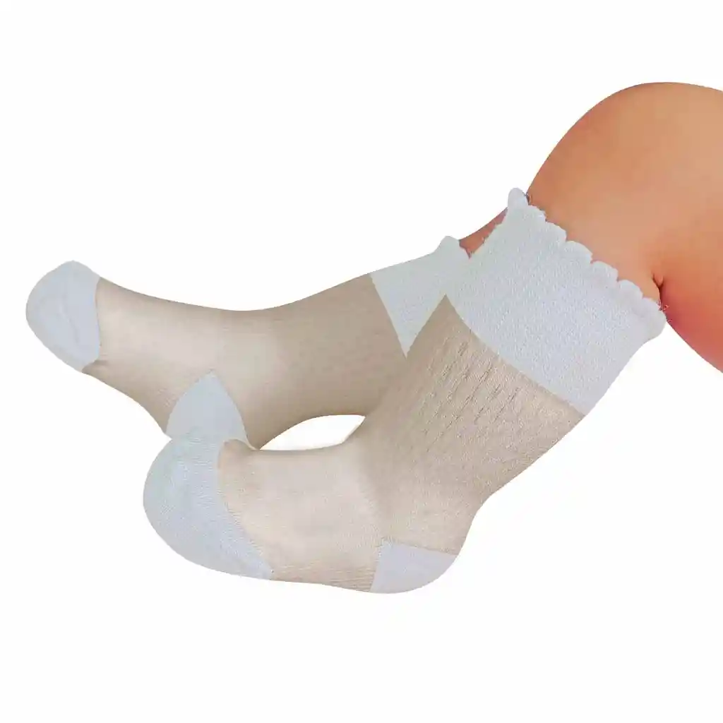 Calcetines de bebé con moritas bordadas, perfectos para el día a día. Su diseño clásico y atemporal los hace combinables con cualquier conjunto. Fabricados con algodón suave y elástico para garantizar la máxima comodidad de tu bebé.