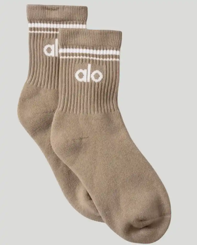 Las medias de Alo Yoga están diseñadas para fusionar la moda urbana con el rendimiento deportivo, ofreciendo una combinación de comodidad, soporte estratégico y detalles técnicos tanto para la práctica de yoga y pilates como para el uso diario. Materiales y Composición Los calcetines de Alo Yoga utilizan una mezcla de materiales de alta calidad, que incluyen: Algodón peinado/rizo: Proporciona una sensación de suavidad y comodidad al tacto, además de ser transpirable. Nailon y elastano (lycra/spandex): Estos materiales añaden durabilidad, elasticidad y ayudan a que la media recupere su forma sin deformarse con el uso. Hilos de iones de plata: Algunos modelos de rendimiento incorporan estos hilos para ayudar a controlar el olor y mantener una sensación de frescura