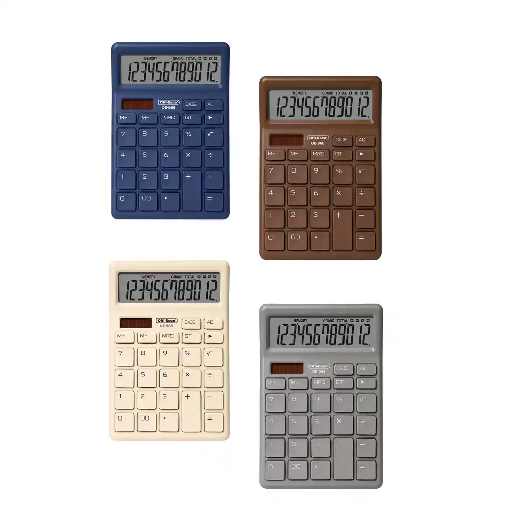 Calculadora electrónica 12 dígitos Tamaño 15.5 cm a 10,3 cm Pantalla inclinada para facilitar la lectura La inclinación es de 3 cm Incluye tecla de apagado Tiene teclas suaves Posee gran pantalla LCD Puedes visualizar el gran total Tiene doble fuente de energía Tiene un sistema que facilita el cambio de batería Posee botones de porcentaje y raíz Tecla de apagado