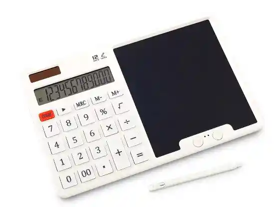 CALCULADORA BLANCO + TABLET DIGITAL LCD + 2 LAPIZ 26.5X16.5CM 12 DIG