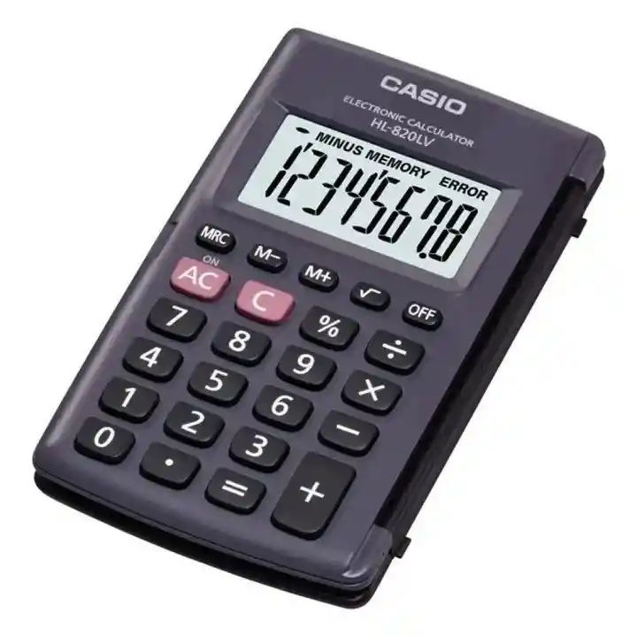 Tipo Portátil • Pantalla grande • Marcadores de coma cada 3 dígitos • 8 dígitos • Memoria independiente • LR54 × 1 • Duración aproximada de la batería principal: 6500 horas • Tamaño: 104 × 127 × 7.5 mm