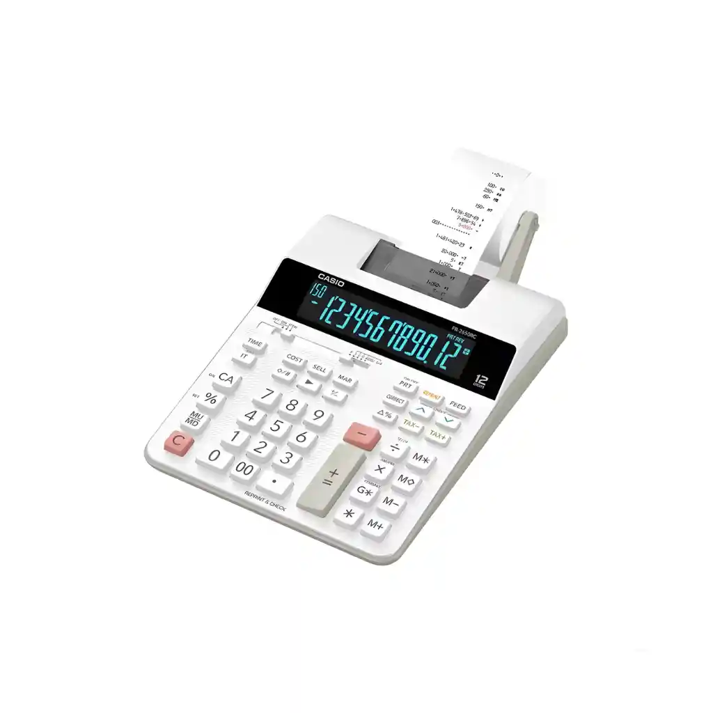Calculadora Casio FR-2650RC con pantalla grande, impresión a 2 colores y adaptador. Precisión y rapidez ideales para oficina y contabilidad.