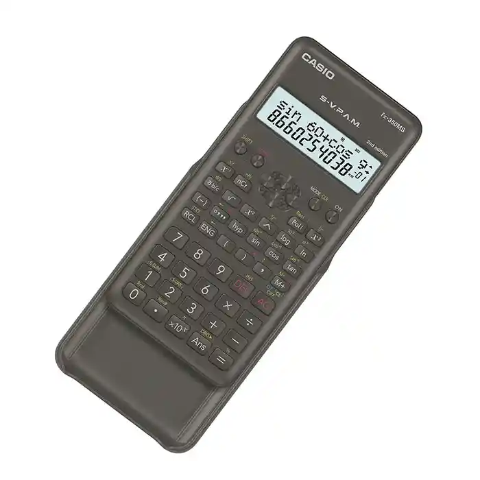CALCULADORA CIENTÍFICA CASIO FX-350 MS Características Cálculos fraccionarios Combinación y permutación Estadísticas (editor de datos STAT, desviación estándar, análisis de regresión) 9 variables Viene con un estuche duro deslizable Especificaciones Cantidad de funciones: 240 LR44 × 1 10 + 2 dígitos Visualización de mantisa de 10 dígitos + exponente de 2 dígitos. Presentación de matriz de puntos Pantalla de alta resolución Porcentaje regular Cálculos de porcentaje regular. Función de reproducción múltiple Llamada rápida y fácil de las fórmulas ejecutadas previamente para la edición y repetición de ejecución. Teclas plásticas Diseñadas y preparadas para ser de uso fácil. S-V.P.A.M. (Método algebraico con perfecta súper visualización) Ésta le brinda todas las características de la serie V.P.A.M. existente, más una nueva visualización de 2 líneas y una útil función de reproducción repetida. Todo esto hace que la matemática sea más fácil de aplicar y comprender que nunca antes. Editor de datos STAT Edición y visualización en retroceso de los datos. Tamaño de la caja/peso total Dimensiones (Pr. × An. × Al.) : 155×85×12mm Peso : 100g