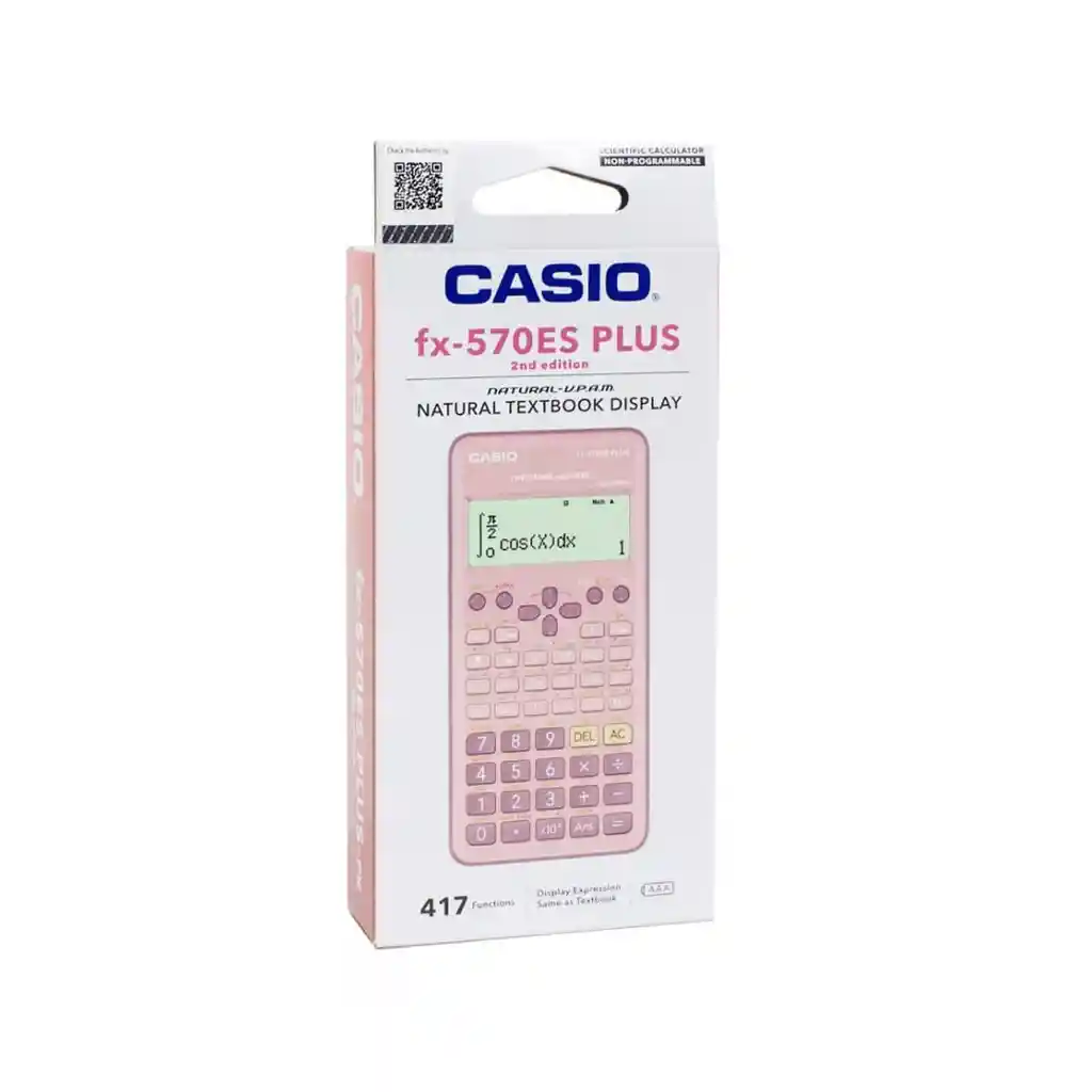 La Calculadora Científica Casio FX-570ES PLUS Rosada combina el alto rendimiento académico de la reconocida serie FX-570ES PLUS con un diseño moderno y atractivo en color rosado. Cuenta con 417 funciones científicas avanzadas y la exclusiva Visualización Natural tipo libro de texto, que permite ver las expresiones matemáticas tal como se escriben en el cuaderno o el libro. Es una herramienta ideal para estudiantes de matemáticas, física, ingeniería y carreras científicas, gracias a su potencia, precisión y facilidad de uso, todo en un formato compacto y portátil. ⭐ Características principales Funciones 417 funciones científicas Operaciones con números complejos Estadísticas y tablas de valores Resolución de ecuaciones (hasta tercer grado) Manejo de matrices y vectores Cálculos trigonométricos, logarítmicos e integrales Pantalla LCD de alta resolución Presentación de libro de texto natural (Natural Textbook Display) Visualización clara de fracciones, raíces y fórmulas Diseño Color rosado Teclado ergonómico Diseño compacto y ligero (aprox. 95–100 g) Fácil de transportar y cómoda para el uso diario Alimentación Funciona con 1 pila AAA Bajo consumo energético Versión Disponible como FX-570ES PLUS / 2.ª Edición Mejora la experiencia de uso manteniendo las mismas funciones avanzadas 🎯 Ideal para: Estudiantes de secundaria Universidad Carreras de ingeniería, ciencias, matemáticas y física