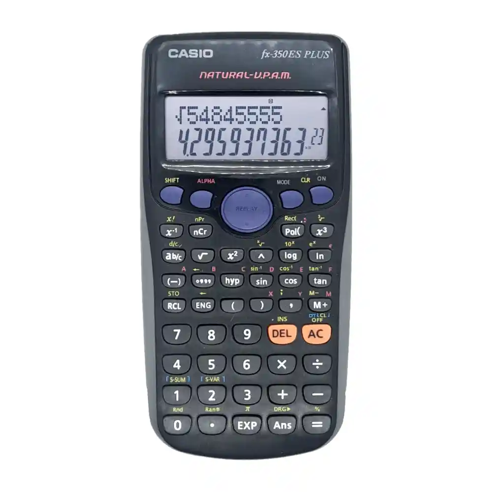 CALCULADORA CIENTÍFICA CASIO FX-350ES PLUS 252 FUNCIONES FICHA TECNICA: La pantalla Natural (Natural-V.P.A.M.) muestra expresiones matemáticas como las raíces y las fracciones que aparecen en su libro de texto, y esto aumenta la comprensión ya que los resultados son más fáciles de entender. ¿PARA QUE ME SIRVE EL PRODUCTO? 252 funciones.40 constantes científicas.40 conversiones métricas.24 niveles de paréntesis. Aritmética de fracciones. Ángulos en grados, radianes (DEG/RAD/GRAD). Conversión entre grados, radianes y gradianes (DEG/RAD/GRAD). Conversión de coordenadas polares y rectangulares (Pol ÷ Rec). Funciones trigonométricas: sin/cos/tan/sin-1/cos-1/tan-1. Funciones hiperbólicas: sinh/cosh/tanh/sinh-1/cosh-1/tanh-1.Exponente, log, In, 10x, ex. Funciones matemáticas: x², x-1, 1/x, x!, xy, x1/y. Cálculos con números de base n (hexadecimal/decimal/binario/octal). Operadores lógicos (AND/OR/etc.). Conversión entre sexagesimal y decimal. Cálculo de porcentajes. Notación técnica ENG/ENG. Cálculos con números complejos. Generador de números aleatorios. Cálculo de vectores y matrices. Resolución de ecuaciones. Función de tabla. CARACTERISTICAS: -Marca: Casio -Modelo: FX-350ES PLUS -Pantalla natural V.P.A.M -Pantalla de matriz de puntos -10 + 2 dígitos -252 funciones -Resolución de ecuaciones -20 pares de valores para conversiones métricas -Cálculo con números complejos -Cálculo de funciones con la tecla Cal (memoria temporal de fórmulas) -40 constantes científicas -Cálculo vectorial y de matrices -Cálculo numérico de integrales / cálculo diferencial -Números enteros aleatorios -Nuevo modo de ecuaciones -Tabla de funciones -Batería R03 Lo que obtienes con tu compra: 1 x Calculadora CASIO