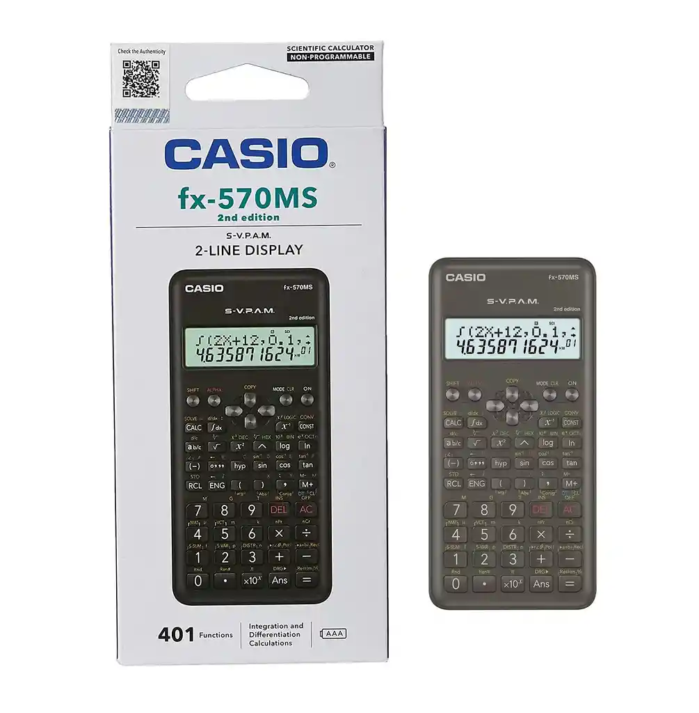● Calculadora Científica Casio original 401 funciones Fx-750MS 2 Edición ● Producto certificado sello de autenticidad ● No programable ● FUNCIONES: Cálculos fraccionarios, Combinación y permutación, Estadísticas (editor de datos STAT, desviación estándar, análisis de regresión), ● 9 memorias de variables, Viene con un estuche duro deslizable, Cálculos de ecuaciones, ● Diferenciales e integrales, Cálculos/conversiones con números de base n, ● Cálculos con números complejos, Cálculos matriciales, Cálculos vectoriales, 40 constantes científicas ●Características del producto : ● No programable ● Sin creación de gráficos ● Cantidad de funciones: 401 ● Número de dígitos 10 + 2 dígitos ● Pantalla de cristal líquido S-V.P.A.M. (Método algebraico con perfecta súper visualización) Presentación de matriz de puntos ● Características clave Teclas plásticas ● Funciones clave Signo negativo Apagado ● Memoria Variables: 9 (A, B, C, D, E, F, X, Y, M) Memoria independiente (M/M+/M-) Memoria de respuesta Protección de memoria Función de restablecimiento ● Fuente de alimentación AAA × 1 (R03) Duración aproximada de la batería principal: 2 años Apagado automático ● Ajustes del formato de visualización Formato de número: Fijo Formato de número: Científico Formato de número: ● Normal Símbolo de ingeniería Notación de ingeniería Conversión de fracción/decimal (tecla de fracción)