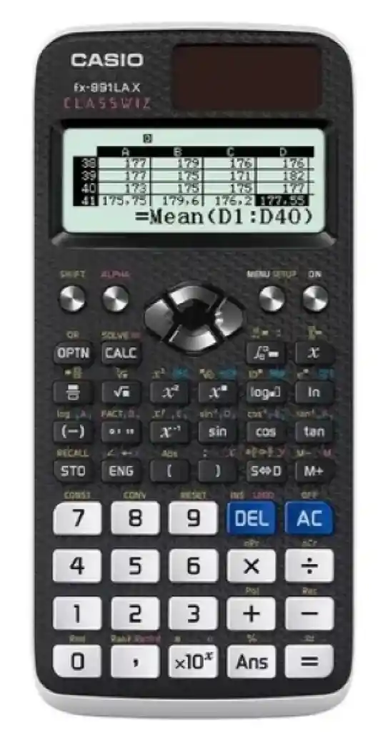 Calculadora Científica Casio Fx-991 la X Classwiz Cantidad de funciones: 553. | Presentación de libro de texto natural. | Visualización de mantisa de 10 dígitos + exponente de 2 dígitos. | Presentación de matriz de puntos. | Menú de iconos | Función de reproducción múltiple | Dos modos de alimentación (Solar + Pila) | Teclas plásticas | Editor de datos STAT basado en listas | Función de conversión métrica Descripción del producto: - Pantalla de íconos intuitiva y fácil de aprender - Presentación de Libro de Texto Natural - Visualización de la lista de funciones para un aprendizaje completo y rápido - Mensajes en español fáciles de entender y un formato interactivo - Alta competencia computacional para realizar incluso operaciones matemáticas avanzadas - Servicio de visualización en línea mediante el uso de código QR - Un conjunto completo de funciones avanzadas propio de las calculadoras científicas de CASIO