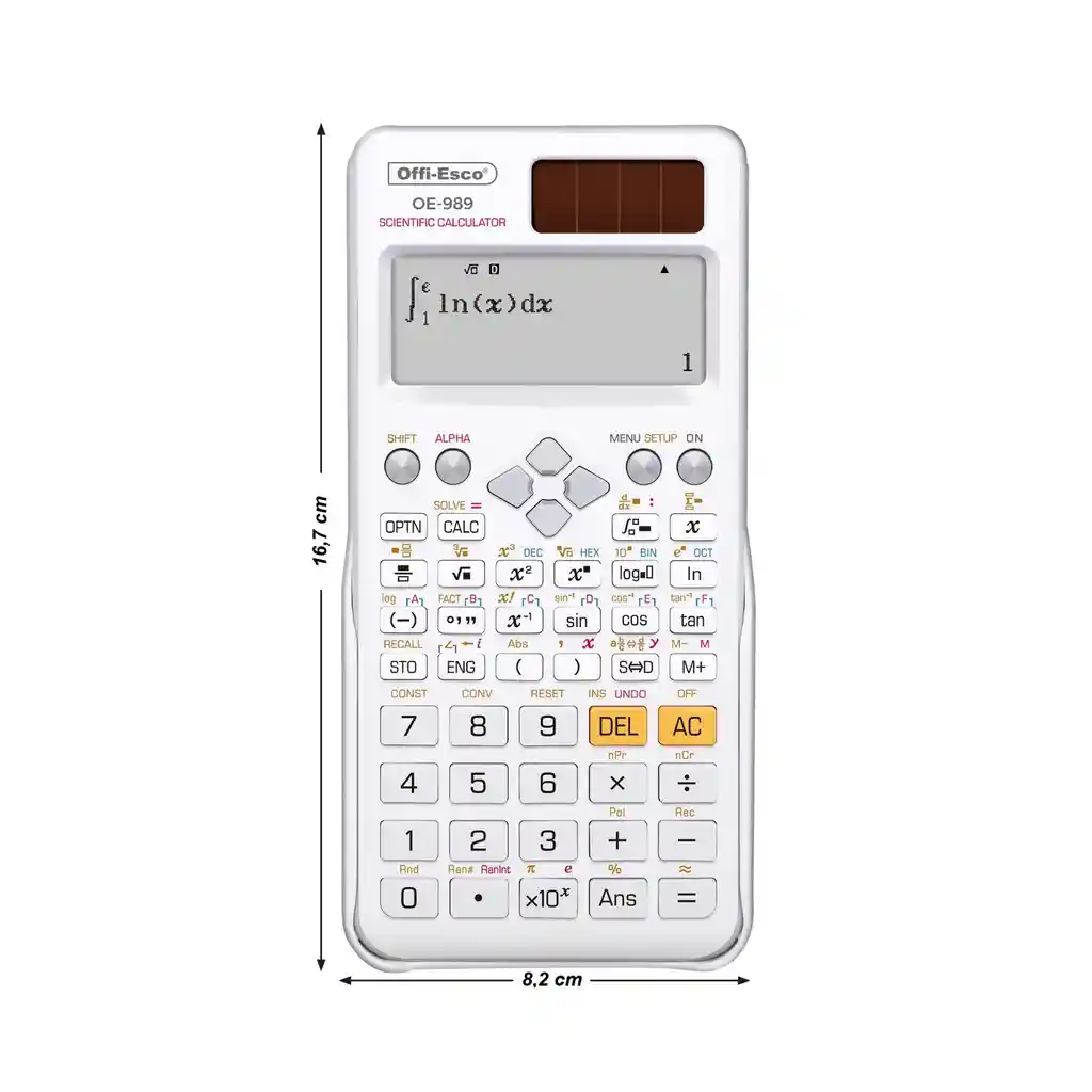 Color: Blanca Calculadora científica 12 dígitos – 552 funciones Cálculos básicos. Crear tabla de números. Cálculos con números complejos. Cálculos vectoriales. Cálculos en base-n. Cálculos de ecuaciones. Cálculos de desigualdad. Cálculos de distribución. Cálculos de hojas de cálculo. Cálculos de razones. Diferenciales Constantes científicas Conversión métrica. Función ANS (respuesta final). Raíces y poderes. Trigonométricas e inversas de las funciones trigonométricas. Función hiperbólica e hiperbólica inversa. Ventana para fácil cambio de batería Doble fuente de energía Gran pantalla LCD Teclas suaves Calculadora portable Carcaza deslizante