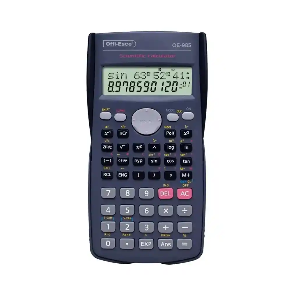 Calculadora Científica Offi-Esco OE-985. Pantalla de 2 lineas, 240 funciones, calculo y conversion de fracciones, conversion de coordenadas, reproduccion de varias lineas, computacion estadistica, generacion de numeros aleatorio, Memoria de respuesta final (ANS9. Ideal para el colegio, la univeridad y el trabajo.