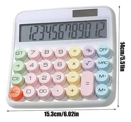 La Calculadora Ctatea Solar CT-2278 es una calculadora básica de escritorio, ideal para hogar, oficina y negocios. Incorpora una pantalla LCD grande de 12 dígitos, que permite una lectura clara y cómoda de los resultados, facilitando cálculos rápidos y precisos. Cuenta con teclado mecánico de teclas grandes y redondas, diseñado para ofrecer un tacto suave y una experiencia de uso cómoda durante jornadas prolongadas. Su alimentación dual (solar y batería) garantiza un funcionamiento continuo y confiable en cualquier momento. ⭐ Características principales Pantalla Pantalla LCD de gran tamaño 12 dígitos para fácil lectura Funciones Operaciones básicas: suma, resta, multiplicación y división Cálculo de porcentajes Funciones de memoria Teclado Teclado mecánico Teclas grandes, redondas y cómodas Ideal para uso continuo Alimentación Energía dual: solar + batería AAA Mayor durabilidad Batería no incluida Diseño Calculadora de escritorio Estable, resistente y compacta Dimensiones aproximadas Largo: 15,3 cm Ancho: 14 cm 🎯 Ideal para: Oficinas y negocios Uso en hogar Tiendas, cajas y escritorios Personas que buscan una calculadora simple y eficiente