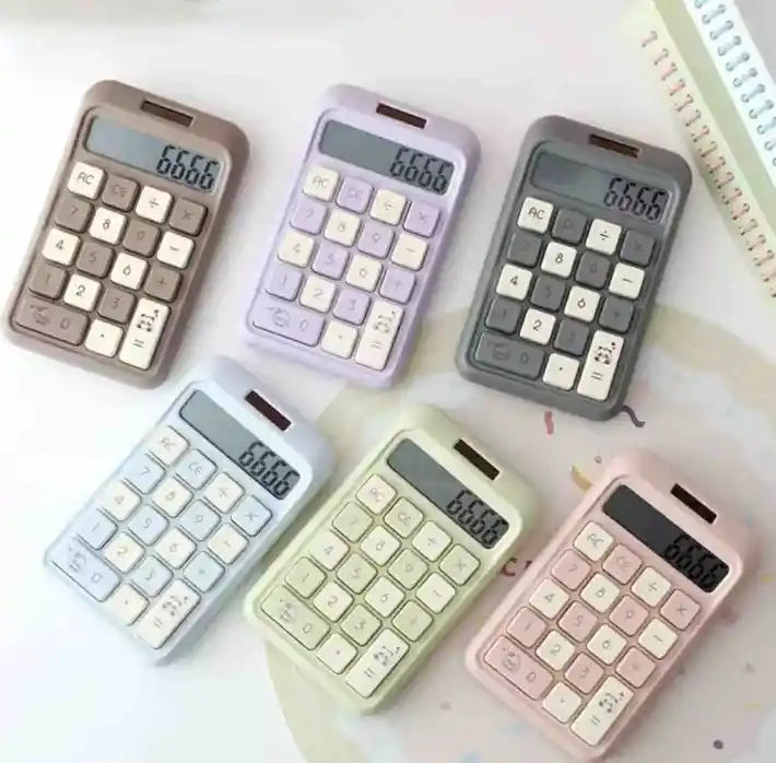 Calculadora de colores con energía solar, práctica y funcional para el uso diario en oficina, estudio o negocio. Con un tamaño compacto de 9.4 cm x 15.5 cm, ofrece un diseño ergonómico con teclas grandes y cómodas que facilitan una digitación rápida y precisa. Su sistema de alimentación con energía solar optimiza el consumo y prolonga su vida útil, ideal para jornadas prolongadas de trabajo. Disponible en colores rosado, morado, verde, azul, gris y café, combina rendimiento, durabilidad y un estilo moderno que la convierte también en una excelente opción para regalo.