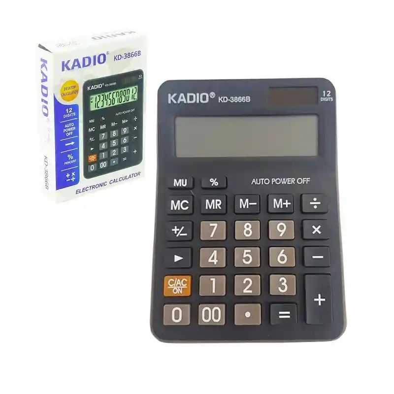 Calculadora de 12 digitos Kadio KD-3866B, funciona con una pila AAA