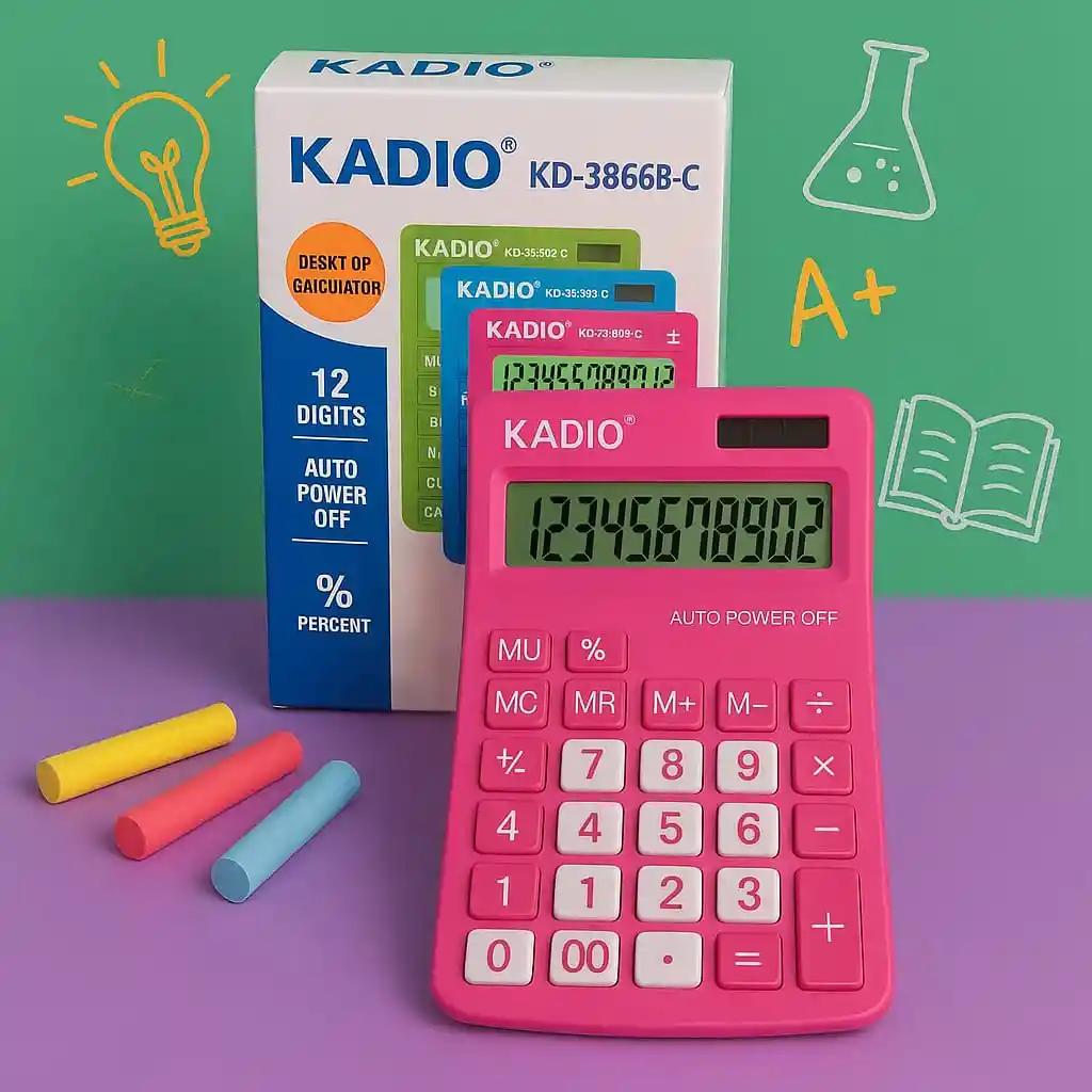 Calculadora Kadio KD-3866B-C Rosada Descripción: Agrega estilo y funcionalidad a tus estudios o espacio de trabajo con la calculadora de escritorio Kadio KD-3866B-C. Con un diseño moderno en color rosado, esta calculadora ofrece una pantalla de 12 dígitos de fácil lectura y funciones básicas ideales para operaciones cotidianas. Su teclado amplio y cómodo garantiza una experiencia práctica tanto en el entorno escolar como en la oficina. ✔ Pantalla grande de 12 dígitos ✔ Función de apagado automático ✔ Teclas suaves y fáciles de usar ✔ Diseño liviano y portátil ✔ Ideal para estudiantes, docentes y profesionales ¡Un toque de color que combina utilidad y estilo en cada cálculo!