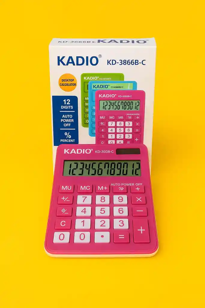 Calculadora Kadio KD-3866B-C Rosada Descripción: Agrega estilo y funcionalidad a tus estudios o espacio de trabajo con la calculadora de escritorio Kadio KD-3866B-C. Con un diseño moderno en color rosado, esta calculadora ofrece una pantalla de 12 dígitos de fácil lectura y funciones básicas ideales para operaciones cotidianas. Su teclado amplio y cómodo garantiza una experiencia práctica tanto en el entorno escolar como en la oficina. ✔ Pantalla grande de 12 dígitos ✔ Función de apagado automático ✔ Teclas suaves y fáciles de usar ✔ Diseño liviano y portátil ✔ Ideal para estudiantes, docentes y profesionales ¡Un toque de color que combina utilidad y estilo en cada cálculo!