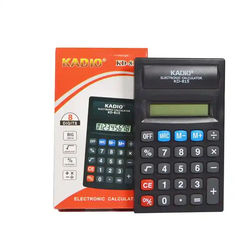 La Calculadora Kadio KD-815 es una calculadora electrónica básica y portátil, diseñada para ofrecer comodidad y practicidad en cualquier lugar. Gracias a su tamaño compacto tipo bolsillo y su pantalla de 8 dígitos, es ideal para uso diario, escolar o comercial, permitiendo realizar cálculos rápidos y precisos estés donde estés. Su diseño liviano la convierte en una excelente opción para llevar en el bolso, mochila o bolsillo, siendo perfecta para estudiantes, vendedores y uso personal. ⭐ Características principales Pantalla Pantalla LCD 8 dígitos de fácil lectura Funciones Operaciones básicas: suma, resta, multiplicación y división Cálculo de porcentajes Funciones esenciales para cálculos rápidos Diseño Formato portátil tipo bolsillo Compacta y ligera Teclas plásticas resistentes Fácil de transportar Uso Ideal para uso personal Perfecta para estudiantes Útil para ventas, comercio y oficina móvil 🎯 Ideal para: Estudiantes Uso diario Comerciantes y vendedores Personas que necesitan una calculadora pequeña y práctica