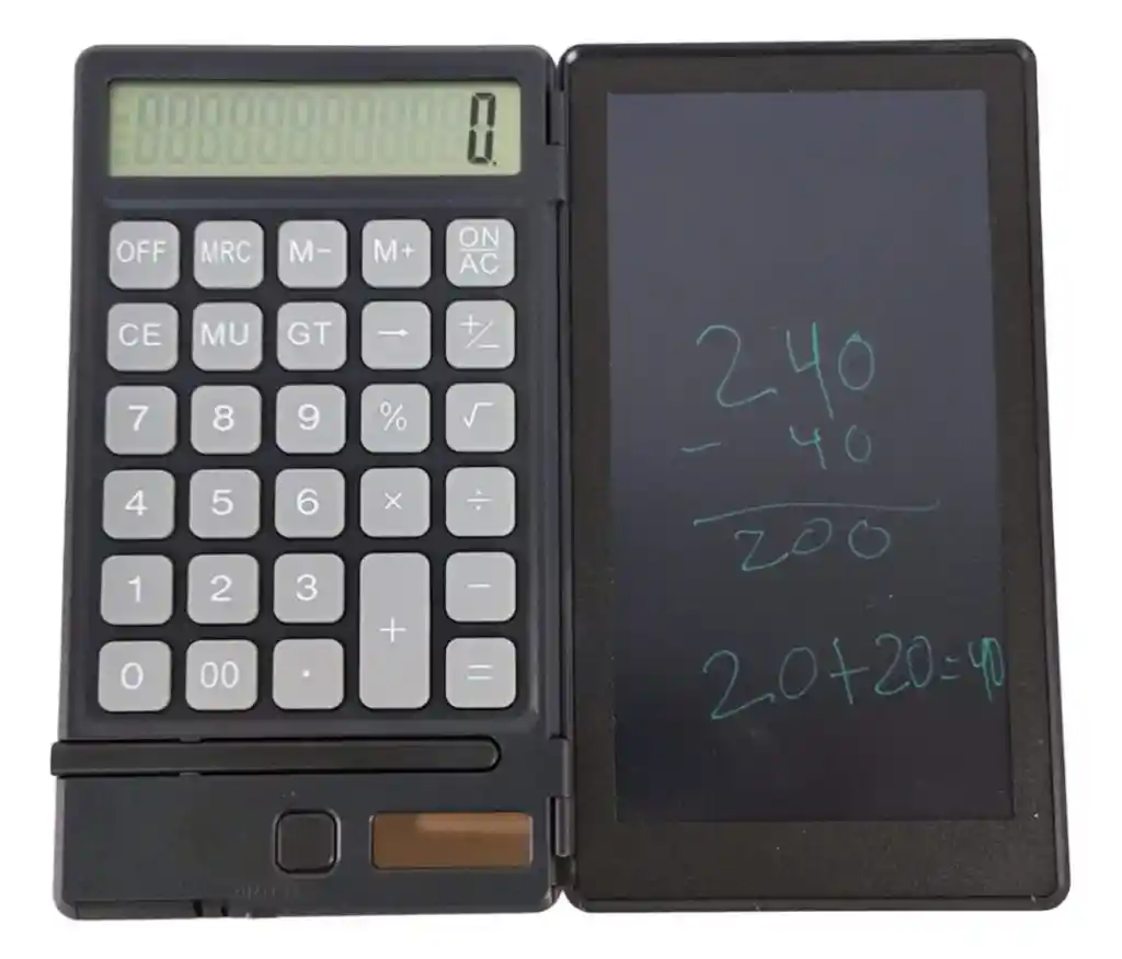 Calculadora de 12 dígitos con pantalla LCD. Funciones básicas de suma, resta, multiplicación y división. Superficie de escritura sensible a la presión para tomar notas y dibujar. Incluye un lápiz para escribir y dibujar en la pantalla. Capacidad de guardar y borrar notas. Ajuste de contraste de la pantalla. Cambio entre diferentes modos de escritura. Funciona con pila. Diseño compacto y portátil. Medidas: Largo: 16cm Ancho: 9cm Alto: 1cm Peso: 114g QUE INCLUYE LA COMPRA x1 calculadora x1 lapiz
