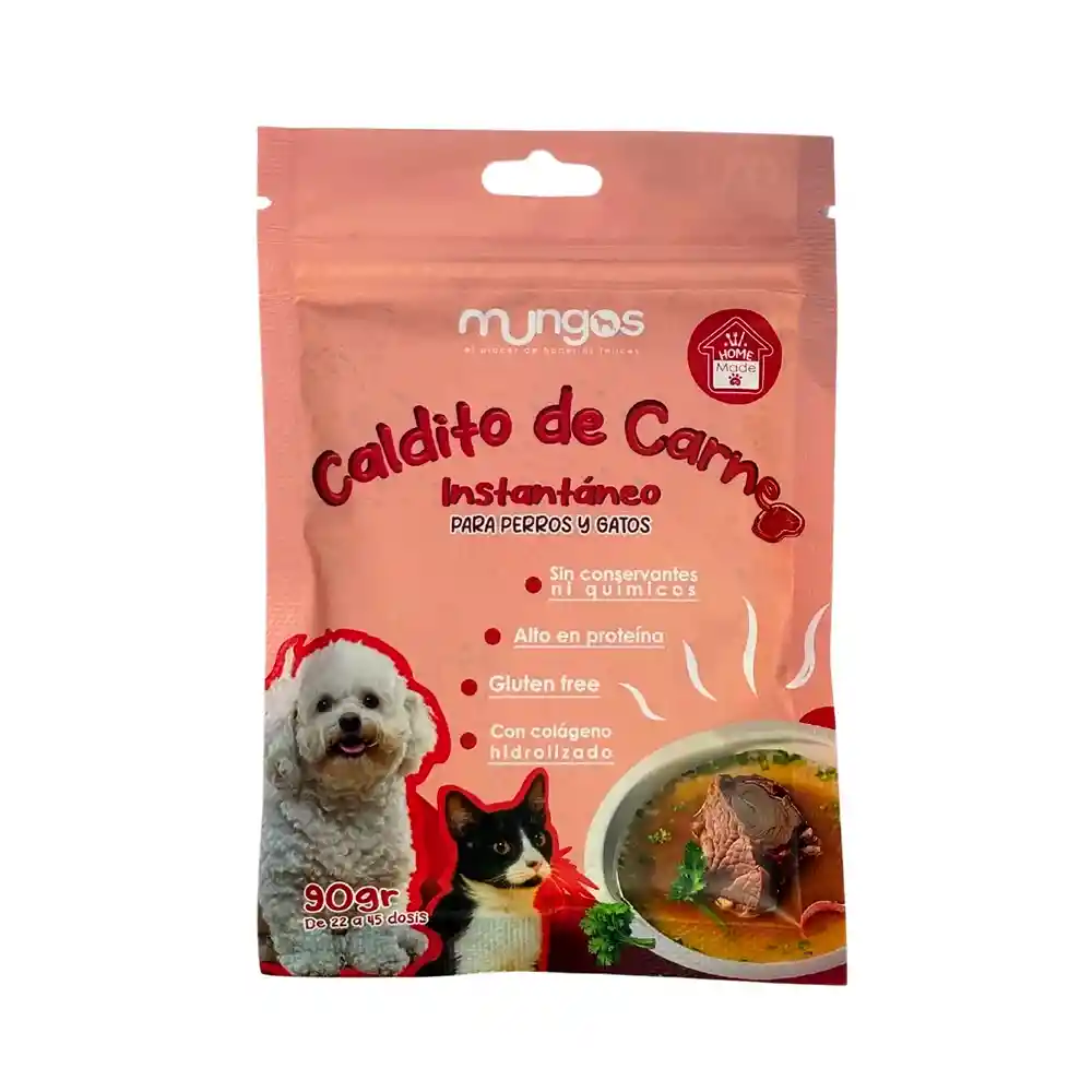 Mungos Caldito de Carne brinda a tus mascotas una experiencia culinaria excepcional! Añadiendo sabor y nutrientes a la alimentación de tu perro y gato.