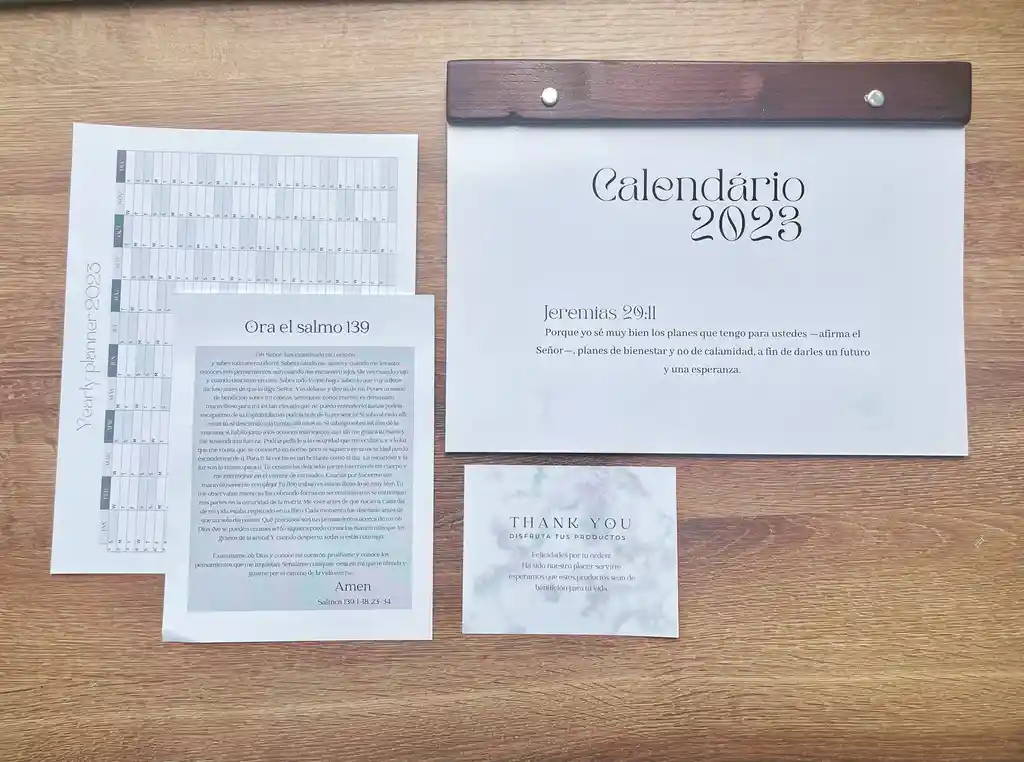 Organiza tu año de la mejor manera con el Kit Calendario 2023, incluye: Oración para el año y sección de peticiones, Plantilla 2023 y el calendario en su propio empaque