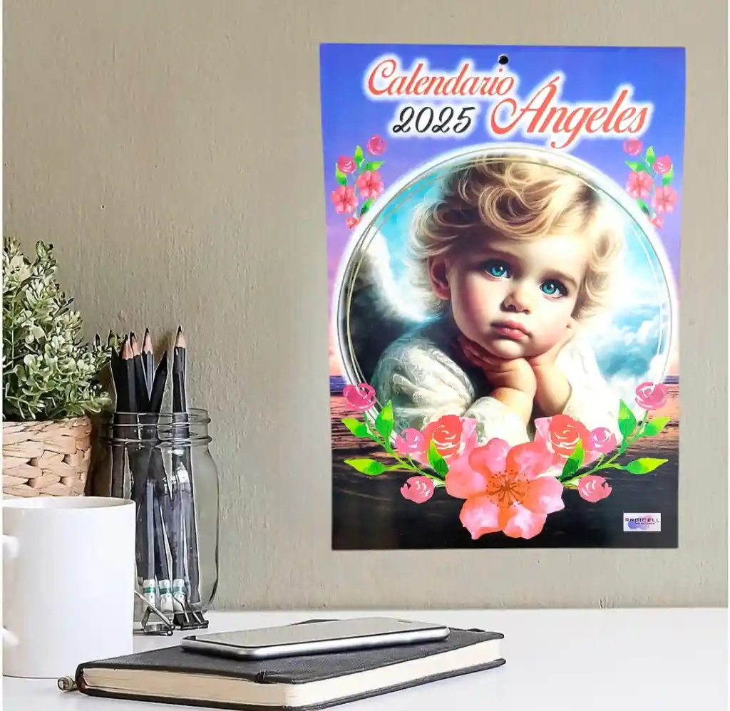 Calendario Católico 2025 Diseño: Ángeles Formato: Vertical Tipo de calendario: Pared Medidas: 34 cm x 24 cm - Este calendario es un recordatorio diario de la importancia de la fe en tu vida. Te inspira y ayuda a mantener tus creencias en el centro de tu rutina, además de organizar eventos religiosos y días santos clave. - Ideal para colgar en la pared de tu oficina, estudio u hogar.