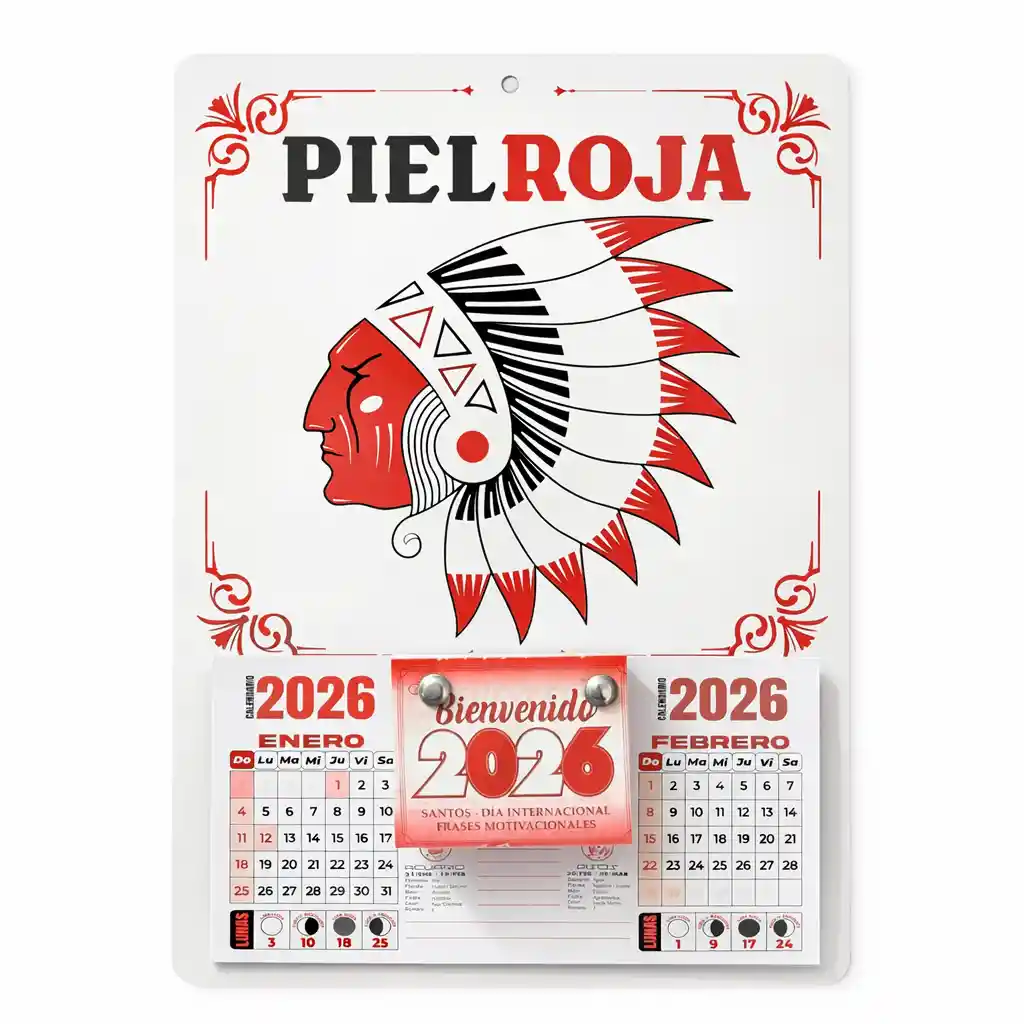 Calendario Almanaque Clásico Piel Roja 2026 Formato: Vertical Tipo de calendario: Pared Medidas: 33 cm x 23 cm Diseño: PielRoja - El Almanaque Clásico de Piel Roja cuenta con una hoja desprendible para cada día, permitiéndote organizar tu tiempo de manera práctica y efectiva. - Una herramienta indispensable para mantenerte al tanto de tus tareas y eventos importantes. - Ideal para colgar en la pared de tu oficina, estudio u hogar.