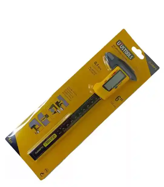 CALIBRADOR PIE DE REY DIGITAL FIBRA CARBONO UYUSTOOLS Este calibrador vernier es un instrumento mecánico para medición lineal de exteriores, medición de interiores y de profundidades. La escala vernier fue desarrollada en 1631 por Pierre Vernier. CARACTERISTICAS • Función de tolerancia • La pantalla se puede configurar a cero en cualquier posición • Pantalla métrica o imperial • La pinza está construida de acero inoxidable endurecido de alta calidad • Las caras de medición de tierra de precisión permiten mediciones de exterior, interior, profundidad y paso • Rango de medición - 0-150 mm (6 pulgadas) • Pantalla LCD - altura del numero 10 mm • Batería - 1.55V LR44 APLICACIONES Este vernier es ideal para la medición de exteriores, de interiores, de profundidades y en algunos calibradores dependiendo del diseño medición de escalonamiento. La exactitud de este calibrador vernier se debe a la precisión de la graduación de sus escalas, el diseño de las guías del cursor, el paralelismo y perpendicularidad de sus palpadores, y la tecnología en su proceso de fabricación.