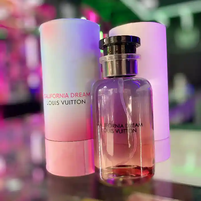 Perfume "CALIFORNIA DREAM LOUIS VUITTON" 100% garantizado. Cada perfume viene con el empaque y caja como se muestra en la foto. 1.1 Cálida y luminosa como un atardecer californiano. Notas de mandarina, flor del peral y benjuí se mezclan en una nube cítrica y suave. Ideal para quienes buscan una sensación solar y envolvente.