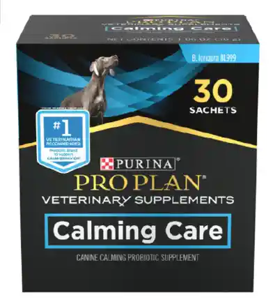 ProPlan Calming care es un suplemento con probióticos altamente palatable desarrollado para perros ansiosos. Ayuda a tu perro a tener un comportamiento tranquilo y calmado.