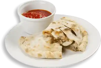Calzone con base napolitana, queso mozzarella, aceite de trufa, queso azul y mix de hongos (hongos de temporada).