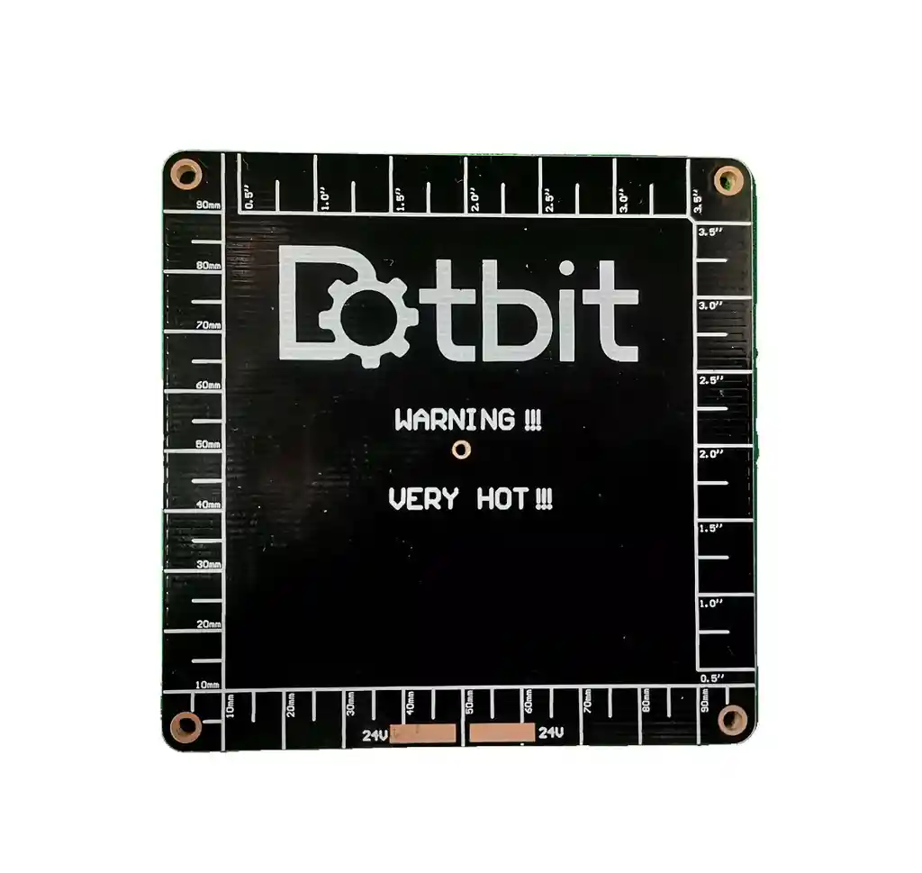 Cama caliente mini. Tamaño: 100x100mm Distancia Orificios: 92x92mm. Espesor 3mm. Tipo PCB. Voltaje: 12-24V DC. CON LA COMPRA LLEVAS: 1x CAMA CALIENTE PEQUEÑA 100x100x3mm