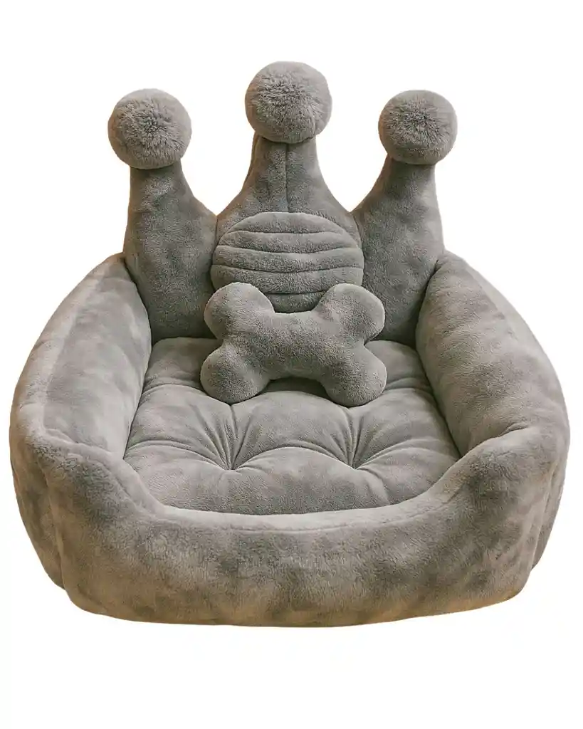 Dale a tu peludo el trono que merece. Esta cama tipo corona en color gris elegante ofrece confort, abrigo y mucho estilo, ideal para perros o gatos pequeños. ¡Con cojín en forma de huesito incluido! 📌 Características destacadas: ✔ Diseño tipo trono con respaldo de corona ✔ Tela suave y calientita estilo peluche ✔ Cojín interno acolchado para mayor comodidad ✔ Lateral alto para mayor seguridad al dormir ✔ Lavable y fácil de transportar Talla Unica 🐶 Ideal para mascotas pequeñas o medianas 🎨 Color: Gris neutro – ¡combina con cualquier decoración!