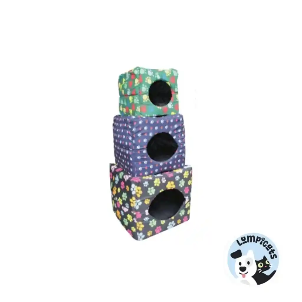 Una cama cubo para gatos es un tipo de cama especialmente diseñada para ofrecer a los felinos un espacio cómodo y seguro donde descansar, jugar o esconderse. Este tipo de cama tiene la forma de un cubo cerrado, con una abertura en uno de sus lados, permitiendo que el gato entre y salga fácilmente. Características principales: Diseño cerrado y acogedor: La estructura tipo cubo crea un ambiente cerrado y cálido, ideal para gatos que prefieren lugares pequeños y protegidos donde se sientan seguros. Su forma también facilita que el gato se enrosque y se sienta resguardado. Materiales suaves y cómodos: La mayoría de las camas cubo para gatos están hechas de materiales suaves como felpa, algodón, lana o terciopelo, lo que las hace muy confortables para que el gato duerma. El interior suele ser acolchonado, lo que garantiza un descanso óptimo. Abertura o puerta: La característica más distintiva es la abertura en uno de sus lados. Esta entrada puede ser simple o contar con un pequeño borde o "puerta" que ofrece más privacidad y comodidad al gato. Tamaño y estabilidad: Suelen ser de tamaño pequeño o mediano, adecuadas para gatos de cualquier raza, aunque especialmente útiles para gatos que buscan un espacio pequeño y cerrado. Algunas camas tienen una base antideslizante para mayor estabilidad. Fácil de limpiar: Muchos modelos de cama cubo tienen fundas removibles o son completamente lavables, lo que facilita su mantenimiento y asegura que siempre estén limpias y frescas para el gato. Beneficios para los gatos: Seguridad y privacidad: Los gatos son animales territoriales y, a menudo, buscan lugares donde se sientan protegidos. El diseño cerrado de la cama cubo ofrece un refugio perfecto para ellos, donde pueden relajarse sin ser molestados. Calidez y comodidad: La estructura cerrada ayuda a mantener el calor, lo cual es muy agradable para los gatos, especialmente en climas fríos. Estimulación y entretenimiento: Algunas camas cubo vienen con elementos adicionales como juguetes, lo que las convierte también en un lugar de juego. Este tipo de cama es ideal tanto para gatos que disfrutan de espacios cerrados como para aquellos que necesitan un lugar tranquilo para descansar y retirarse del ajetreo del hogar.