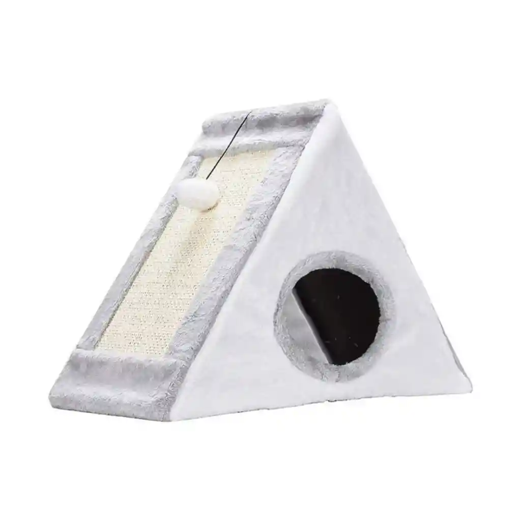 Estas cuevas para gatos simplemente ofrecen un lugar para que tu gatito descanse u esconda. Nuestro diseño especializado y conveniente proporciona un santuario seguro y cómodo que también cuenta con dos tablas para rascar, adornadas a ambos lados de la cama triangular escondida proporciona horas de aseo, afilado de garras, dormir y jugar para tus amigos de cuatro patas.