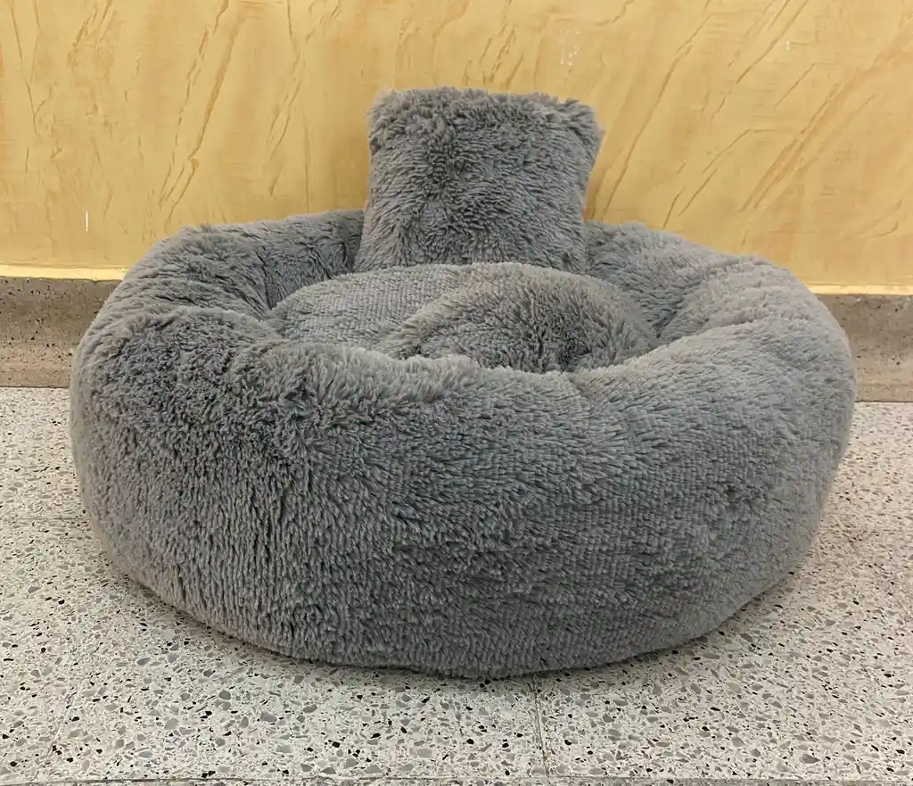 Cama Dona Gris talla S, incluye cojín, además, viene con cierres para extraer el relleno y lavarlas fácilmente Diámetro: 60 cm aprox. Alto: 25 cm aprox.