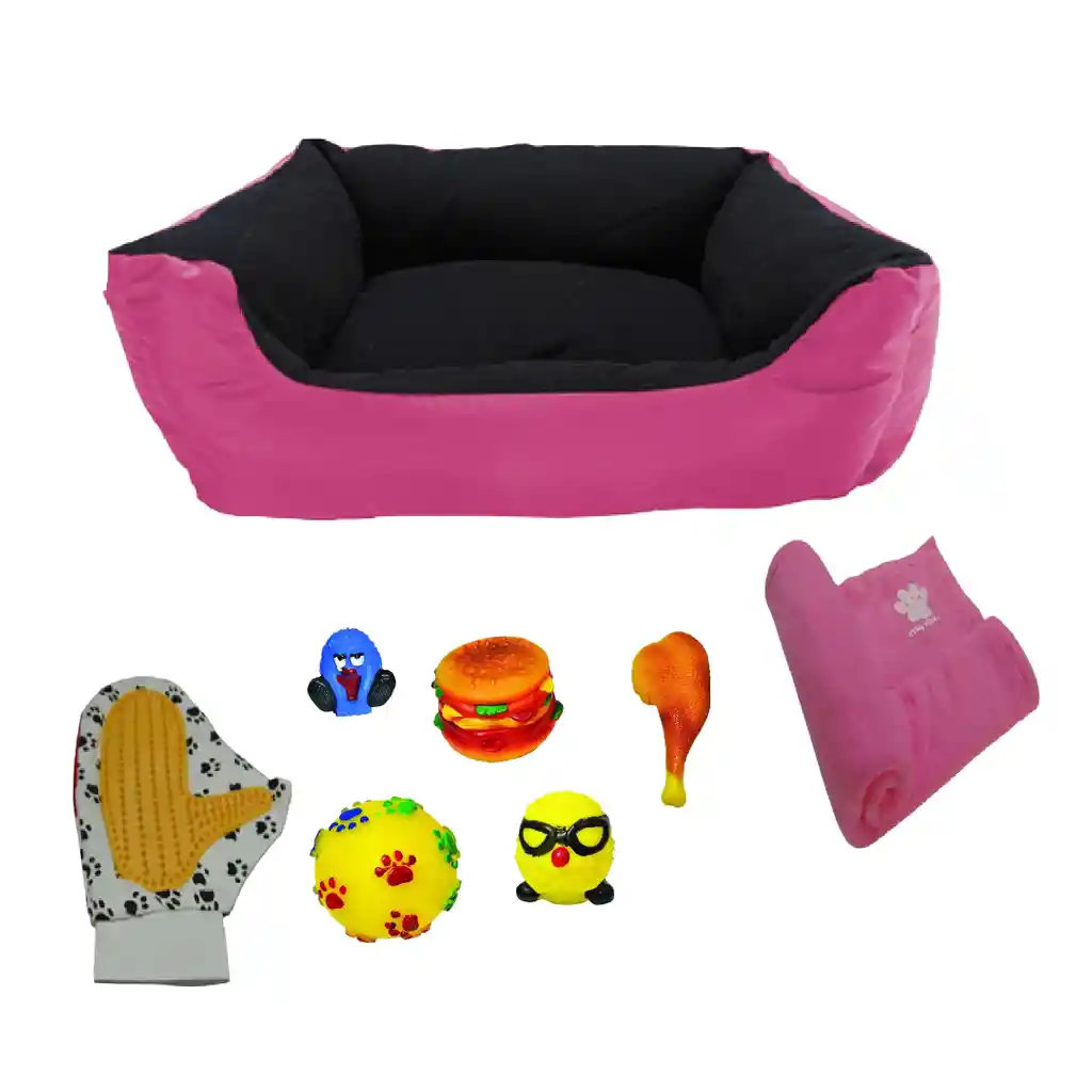 Lleva una Cama Gigante para darle un súper descanso a tu mascota. Elaborada con relleno supersuave de fibra Siliconada, material suave y fresco, ideal para darle un cómodo y suave descanso a tu mascota, recomendado para para perros grandes cuenta con bumpers para que apoye su cabeza donde quiera. Características: -Medidas: Medidas externas Ancho 76 cm, Largo 95 Cm, Alto 24 Cm Medidas en el área para dormir Ancho 46 cm, Largo 64 cm, Alto 24 cm Medidas del cojín, Ancho 65 cm, Largo 80 cm, Alto 15 cm -Cojín extraíble cuenta con una cremallera con el fin de retirar el relleno y facilitar el lavado. -Cama y cojín con relleno en fibra siliconada suave. Elije tu favorita más de 10 Colores, siempre disponibles Se puede en lavadora ciclos de lavado delicados o suaves colocando la cama dentro de una funda secando en fondo de la lavadora o secadora directamente después del lavado. Lleva 1 Cobija térmica Grande para mascota con lindo estampado de huella. Elaborada en tela térmica con alto grado de suavidad, cuenta con los bordes fileteados para que esta no pierda su forma al pasar el tiempo, Adicional mente se puede utilizar complemento o cobija en la cama de tu mascota, gracias a la tela estas cobijas brindan calor y comodidad Tiene una gran superficie de uso Aproximadamente 70 Cm x 120 Cm. Elige el color que más te guste entre más de 10 Colores. Se puede en lavadora ciclos de lavado delicados o suaves colocando la cama dentro de una funda secando en fondo de la lavadora o secadora directamente después del lavado. GUANTE CEPILLO PARA PERROS Y/O GATOS El cepillado es la base fundamental para el cuidado del pelaje canino, si lo haces frecuentemente eliminarás hasta el 50% de la suciedad y el pelo muerto de tu perro, dos factores que con frecuencia son los generadores de nudos y los molestos pelos por toda la casa. Lo mejor para las mascotas es usar un "Guante Plástico" o cepillos con cerdas plásticas, los cuales arrastran el pelo muerto sin maltratar la piel, reduciendo considerablemente la cantidad de pelo que tu mascota deja en el sofá, piso, cama y en tu ropa. Juguete Grande: Juguete Plástico GRANDE surtidos con pito. Estos juguetes plásticos con forma son ideales morder, gracias a su tamaño y flexibilidad proporciona entretenimiento y diversión para el amo y su mascota al mismo tiempo que fortalece dientes y mandíbulas Tener en cuenta Las imágenes son referencia para conocer el producto, al momento de despachar se hace de manera aleatoria teniendo cuidado de no repetir el mismo juguete