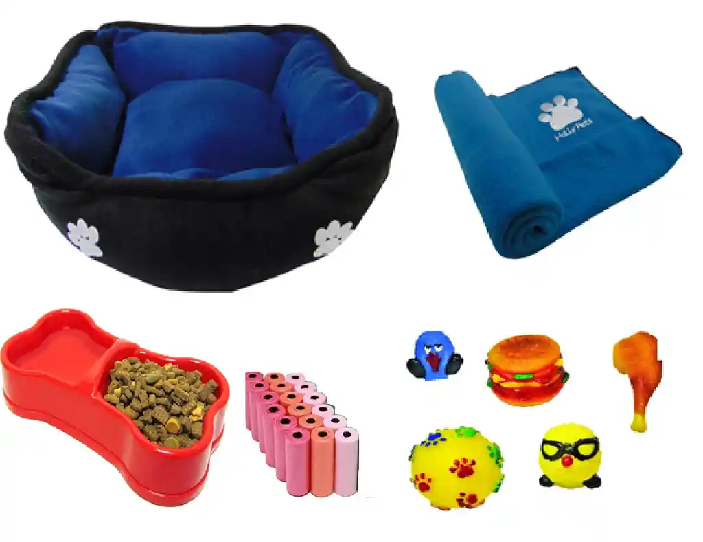 CONTENIDO: 1 Cama Grande Doble Faz 1 Cobija Grande 1 Comedero Doble 10 Rolllos de Bolsas 2 Juguetes Blandos Lleva Una Cama Grande Doble Faz para darle un súper descanso a tu mascota Elaborada con tela fleece con relleno supersuave de fibra Siliconada, ideal para darle un cómodo y suave descanso a tu mascota, se puede usar por ambas caras, ideal para para perros medianos y Grande y/o Para gatos de todos tamaños, cuenta con bordes elevados creando una sensación de seguridad y proporcionando un apoyo para la cabeza y el cuello Medidas externas Ancho 62 cm, Largo 65 Cm, Alto 22 Cm Medidas en el área para dormir Ancho 34 cm, Largo 39 cm, Alto 19 cm Elije tu favorita entre más de 10 Colores, siempre disponibles Se puede en lavadora ciclos de lavado delicados o suaves colocando la cama dentro de una funda secando en fondo de la lavadora o secadora directamente después del lavado. * Lleva 1 Cobija térmica Grande para mascota con lindo estampado de huella. Elaborada en tela térmica con alto grado de suavidad, cuenta con los bordes fileteados para que esta no pierda su forma al pasar el tiempo, Adicional mente se puede utilizar complemento o cobija en la cama de tu mascota, gracias a la tela estas cobijas brindan calor y comodidad Tiene una gran superficie de uso Aproximadamente 120 Cm x 70 Cm. * 1 Comedero forma de hueso mediano El comedero o bebedero Hally Pet está fabricado a base de plástico no-tóxico. Con un diámetro de 26 cm x 14 cm en su base. * 2 Juguetes plásticos medianos, Estos juguetes plásticos con forma son ideales morder, gracias a su tamaño y flexibilidad proporciona entretenimiento y diversión para el amo y su mascota al mismo tiempo que fortalece dientes y mandíbulas Tener en cuenta Las imágenes son referencia para conocer el producto, al momento de despachar se hace de manera aleatoria teniendo cuidado de no repetir el mismo juguete *10 Rollos de bolsas para recoger excremento de mascota Saca a tu mascota a pasear sin tener complicaciones al momento de recoger el excremento, lleva contigo cada rollo en el dispensador debido a que estos rollos se acoplan a cualquier dispensador que tengas. Colores Surtidos Cada Bolsa mide 22 Cm x 30cm Rollos de 10 bolsas Cada uno.