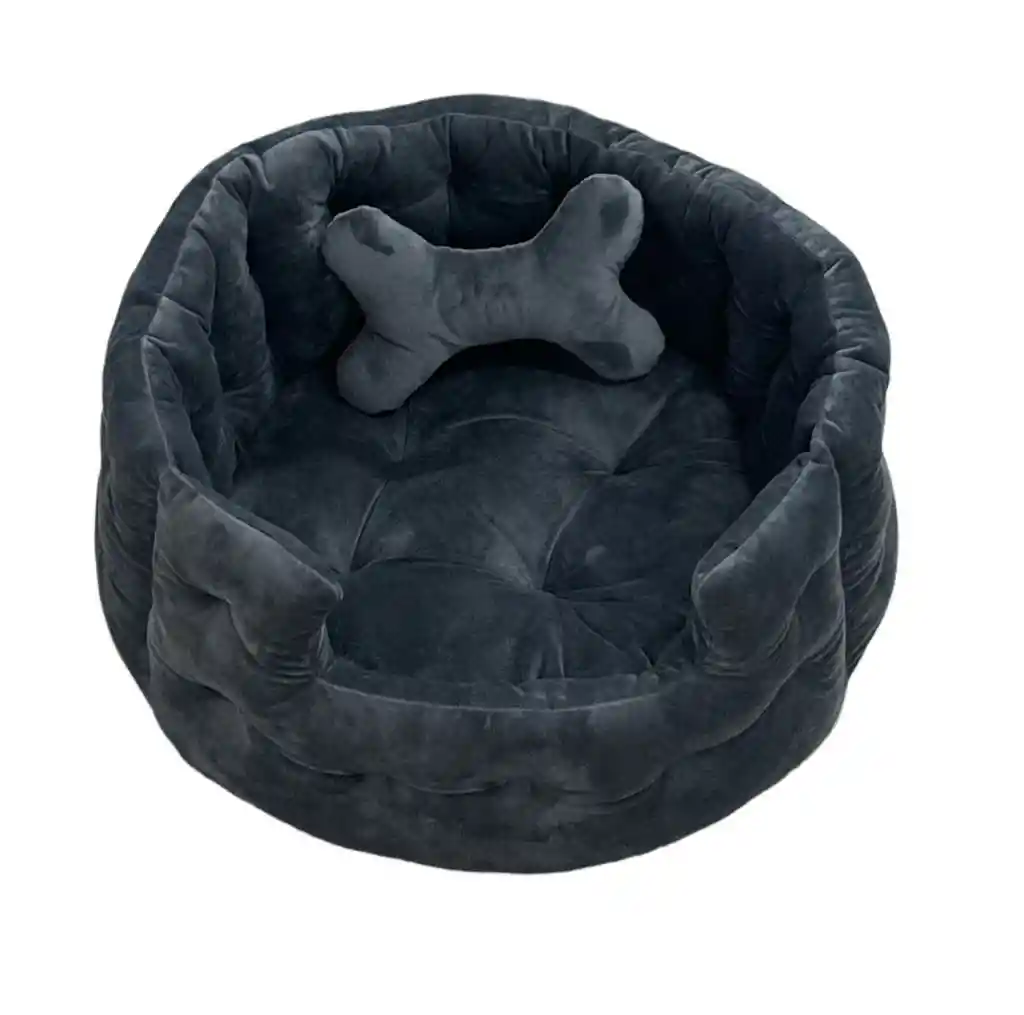 Cama acolchada y cómoda diseñada para brindar un descanso óptimo a perros de talla mediana. Su forma redonda permite que la mascota se acurruque con facilidad, ofreciendo mayor sensación de seguridad, confort y relajación durante el sueño. Fabricada con materiales suaves y resistentes, es ideal para uso diario. Su base acolchada ayuda a aislar del frío del piso, mientras que su diseño en color gris combina fácilmente con cualquier espacio del hogar, aportando estilo y funcionalidad.